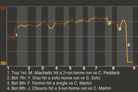 San Diego took a 4-2 lead on Jackson Chourio's 4th home run of the season. The 3-run home run, which Chourio hit in the bottom of the eighth, left San Francisco pitcher Chris Martin visibly frustrated.