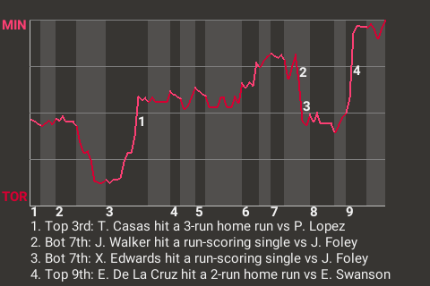 (1, 9th Inning off E. Swanson, 0 on, 0 outs)