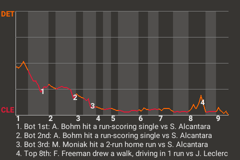 (4, 9th Inning off D. Floro, 0 on, 0 outs)
