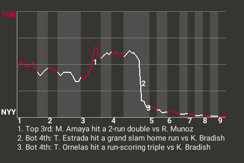 (1, 4th Inning off K. Bradish, 3 on, 2 outs)