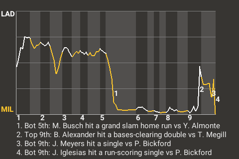 b - R. Grichuk substituted for J. Pederson in the 5th