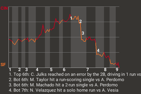a - J. Winker pinch hit for J. Sanchez in the 5th