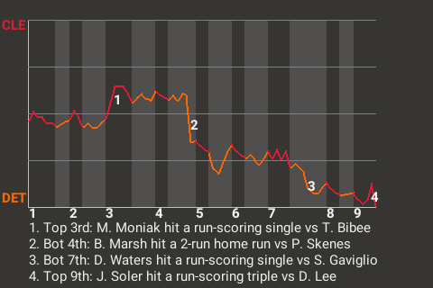 In the bottom of the 4th, Detroit took the lead on a 2-run home run by Brandon Marsh. At the time, the Tigers were trailing 1-0, but Marsh's hit with two outs against Cleveland pitcher Paul Skenes put them in front, 2-1.