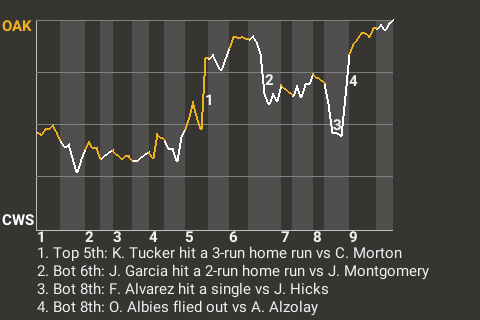 Oakland used the hitting of Kyle Tucker to pick up the win. The right fielder clubbed a 3-run home run in the top of the fifth inning to put the Athletics on top, 4-1. For the game, Tucker had 1 home run and 1 single in 5 at-bats.