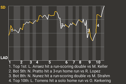 San Diego used the clutch hitting of Luis Torrens to snag the win. The catcher drilled a solo home run in the top of the tenth inning to put the Padres ahead, 5-4. It was his lone hit in 4 at-bats, but it was a crucial one.