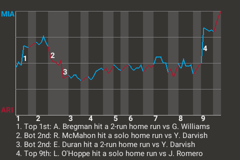 Marlins third baseman Alex Bregman put his stamp on his team's 4-3 win over the Arizona Diamondbacks. Bregman went 3 for 5 with a home run and 2 singles. He drove in 2 runs and scored once for Miami in the contest. John King notched the win in relief. The left-hander allowed no runs on no hits in 1.2 innings. His record now sits at 3-1. With the win, Miami pushed its record to 49-32.