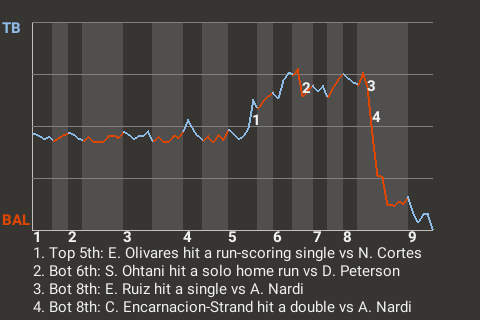 Christian Encarnacion-Strand contributed a productive at-bat in the bottom of the eighth. With a runner on 1st, he hit a double. His at-bat helped Baltimore get the win.