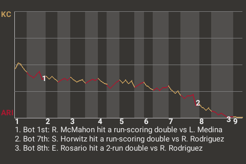 Arizona took a 2-0 lead on Spencer Horwitz's 22nd double of the season. The run-scoring double, which Horwitz hit in the bottom of the seventh, left Kansas City pitcher Randy Rodriguez visibly frustrated.