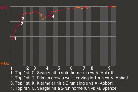 The Atlanta Braves defeated the Houston Astros, 8-2, at Minute Maid Park. Atlanta was led by two-time All-Star Corey Seager, who hit 2 home runs. He drove in 3 runs and scored twice. Jose Berrios picked up the win, lifting his record to 2-8 on the season. He struck out 5 and walked 3 in 6 innings, while yielding 2 runs. Houston has now lost 4 straight.