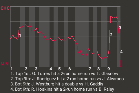 Minnesota got a knockout punch from Rhys Hoskins. The pinch hitter hammered a 2-run home run in the bottom of the ninth inning to win the game. It might've been his only hit, but it decided the outcome.