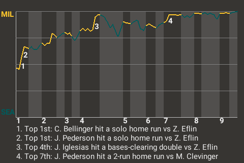 2 (29, 1st Inning off Z. Eflin, 0 on, 1 out; 7th Inning off M. Clevinger, 1 on, 0 outs)