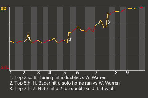 San Diego used a superb performance from starting pitcher Drew Rasmussen to down the St. Louis Cardinals, 4-0. The triumph puts San Diego at 58-45 for the season.
