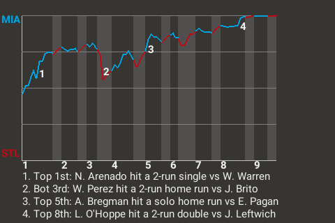 Nolan Arenado helped his team jump on top from the get-go. His first time up in the top of the first, he cranked a 2-run single to give Miami a 2-0 lead.