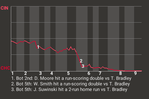 2 (9, 2nd Inning off T. Bradley, 1 on, 2 outs; 5th Inning off T. Bradley, 0 on, 0 outs)