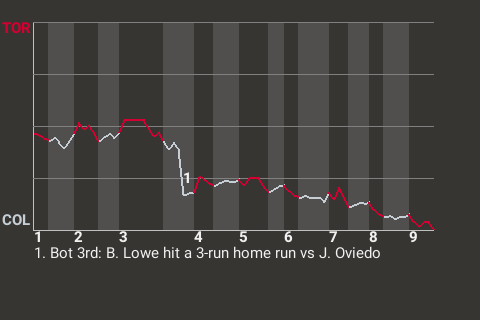 Brandon Lowe, who is tied for 4th in the NL in bases on balls with 71, took Toronto hurler Johan Oviedo deep in the bottom of the third. His 3-run home run put the Rockies on top, 3-0. In all, Lowe had 1 single in addition to the home run, while going 2 for 4.