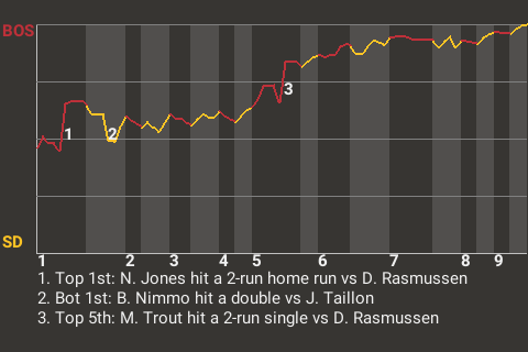 Boston center fielder Mike Trout contributed a timely at-bat in the top of the fifth. With two down, he hit a fastball to left field for a 2-run single. It was his 112nd hit of the season and put the Red Sox ahead, 4-1.