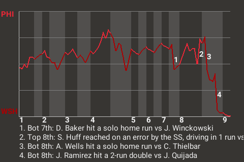 Ramirez had a game-changing double in the bottom of the eighth. On a 1-0 fastball from Jose Quijada, he banged a 2-run double to left-center, giving the Nationals a 6-4 lead. It was the 32nd double of the year for Ramirez.