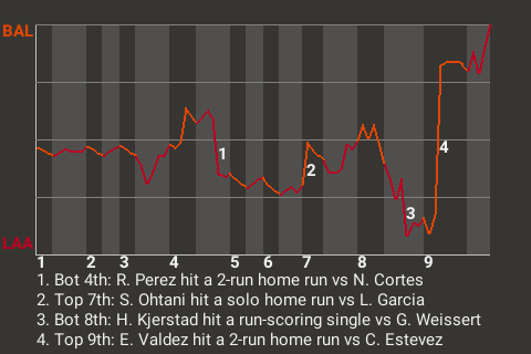 Enmanuel Valdez came through with a big-time hit for Baltimore. The left fielder smacked a 2-run home run in the top of the ninth inning to give his team the lead, 4-3. It was his only hit, but it was clutch.
