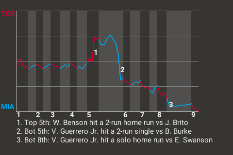 Vladimir Guerrero Jr. knocked in 3 runs to help Miami beat Toronto, 4-2. The Montreal, Canada native tallied 1 single and 1 home run. The loss makes Toronto 58-72.