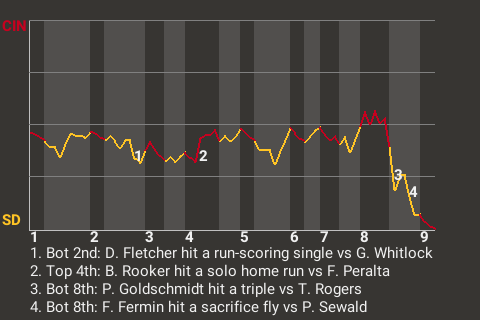 By defeating Cincinnati, the third-place Padres improved to 82-63.