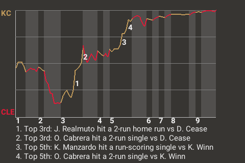 A key moment came with two out in the top of the third. That's when Cabrera hit a curveball from Dylan Cease for a 2-run single, putting Kansas City up, 6-4.
