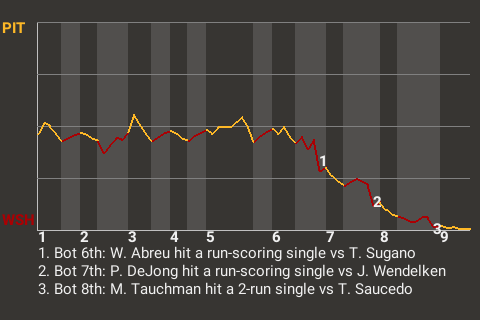 Washington right fielder Wilyer Abreu helped the Nationals go up, 1-0, in the bottom of the sixth inning. With the game tied, Abreu hit a run-scoring single off Pittsburgh pitcher Tomoyuki Sugano.
