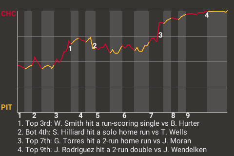 Gleyber Torres was a vital contributor to the 7-3 Chicago victory over Pittsburgh. The Cubs third baseman was 2-3 with a home run and 2 walks. He scored 3 runs and drove in 3. Andres Munoz was credited with the save. He has now successfully converted 36 of 39 save opportunities.