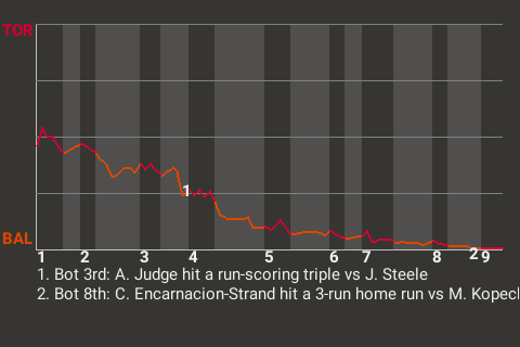 Christian Encarnacion-Strand, who is tied for 2nd in the AL in doubles with 9, came through for Baltimore with a 3-run home run in the bottom of the eighth. The first baseman went 2 for 5 for the game, including 1 home run and 1 double. He scored 2 runs and collected 3 runs batted in.