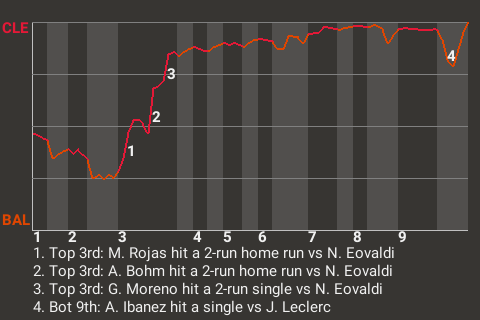 The Guardians got a big at-bat from third baseman Alec Bohm. For the game, Bohm was 1 for 4 with a home run and a walk. He drove in 2 runs and scored once. In the top of the third, with a runner on 2nd, he stroked a 2-run home run. His 1st home run of the season gave Cleveland a 4-2 lead.